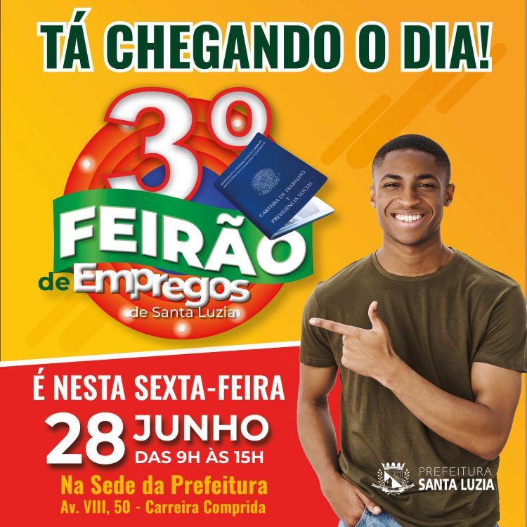 A Prefeitura de Santa Luzia, por meio da Secretaria de Desenvolvimento Econômico, realizará na sexta-feira (28) o 3º Feirão de Empregos da administração municipal. A expectativa é de disponibilizar cerca de 500 vagas em diversas áreas no dia do evento. As empresas que desejam participar podem se inscrever até o dia 20 de junho e cadastrar as vagas.