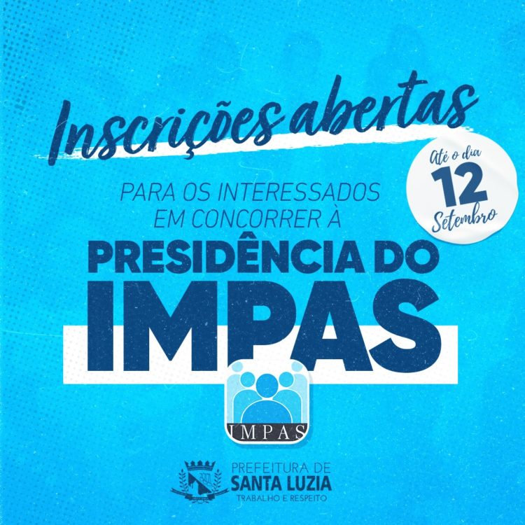 O IMPAS – Instituto Municipal de Previdência e Assistência Social de Santa Luzia abriu, na quinta-feira (1) as inscrições para o cargo de presidente da entidade e o período de inscrições permanecerá aberto até o dia 12 de setembro. Todos os candidatos deverão inscrever-se na sede da entidade, na Rua Marechal Deodoro da Fonseca, 306 – Bairro Boa Esperança – Santa Luzia-MG, no horário de 8h às 14h, somente em dias úteis.