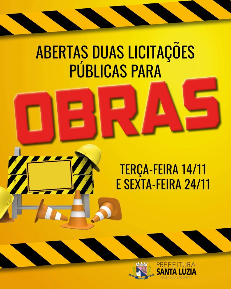 A Prefeitura de Santa Luzia faz nesse mês de novembro duas licitações públicas para contratação de empresas que serão responsáveis pela execução de obras no município. A primeira será na próxima terça-feira (14), para contratação de empresa especializada para execução de duas passarelas ao longo de três pontes na Avenida Brasília.