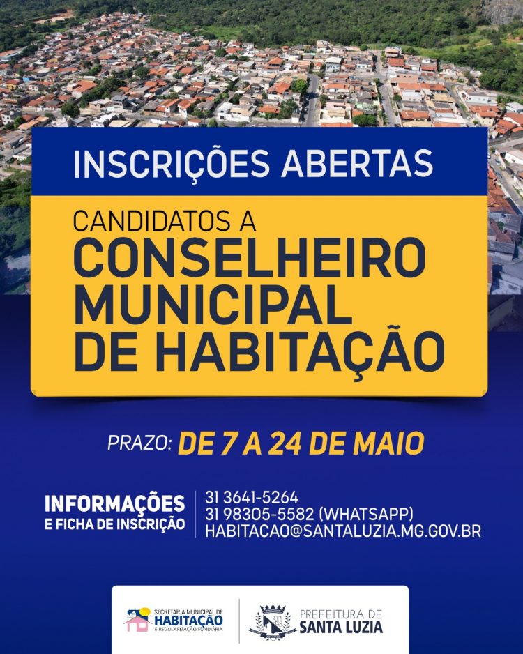 A partir desta terça-feira (7), estarão abertas as inscrições para as vagas no chamamento público para entidades de ensino superior, dos movimentos populares vinculados à luta pela moradia e da área empresarial ligadas ao setor imobiliário ou da construção civil para o processo de escolha de representantes da sociedade civil para composição do Conselho Municipal de Habitação/CMH, para o mandato do Biênio de 2024/2026.