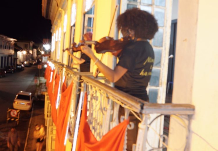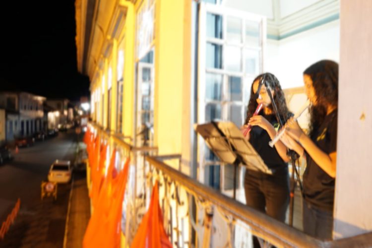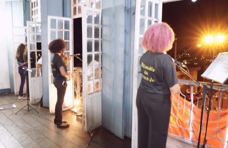 Das janelas do imponente casarão, o grupo formado por instrumentos como violão, violino, flauta e percussão, tocou clássicos da música popular brasileira e internacional, de compositores como Milton Nascimento, Chaplin, Bach, Beto Guedes, Beatles, entre outros.
