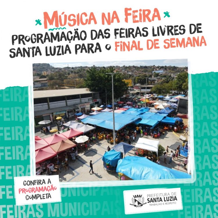 A Prefeitura de Santa Luzia tem o prazer de divulgar a programação musical das feiras livres neste final de semana, 30 de novembro e 1 de dezembro. Confira as atrações: