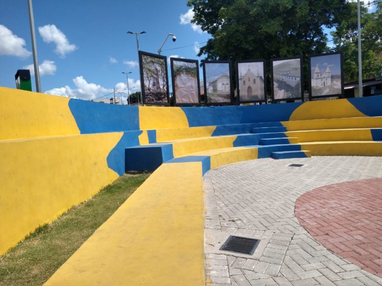 Azul e amarelo são as cores escolhidas pelo artista Rodrigo Alves da Silva, de 42 anos, a quem coube revitalizar a arena do Parque Linear de Santa Luzia. Esta foi a solução encontrada pela Prefeitura para interromper o processo de vandalização pelo qual o local estava passando, uma vez que já havia sido todo pichado.