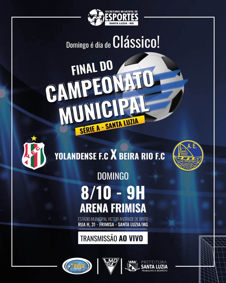 O Estádio Arena Frimisa receberá no próximo domingo (8), a final do Campeonato Municipal Série A de Santa Luzia 2023. Na briga pelo título do campeonato, o Yolandense FC enfrenta o Beira Rio FC. A partida está marcada para começar às 9h e a entrada será gratuita.
