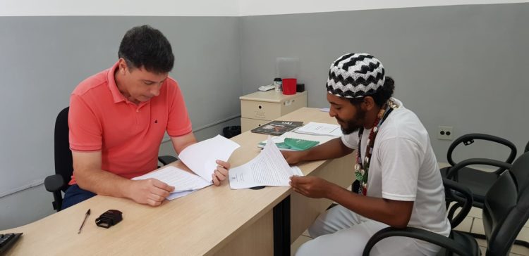 Na manhã da sexta-feira (27), foi assinado na sede da Secretaria de Meio Ambiente, Agricultura e Abastecimento de Santa Luzia, o primeiro termo de adesão ao Programa Adote o Verde, iniciativa que busca obter, junto a pessoas físicas e jurídicas, apoio para a manutenção de praças e demais logradouros públicos da cidade. A praça adotada foi a grande Praça da Juventude, no bairro Cristina, que a partir de agora passa a ser cuidada, por um ano, pelos membros da Associação Cultural Afro-Brasileira de Nanã e Pai Tião do Congo. O termo de compromisso foi assinado pelo secretário Wagner Silva da Conceição e o representante da entidade, Pai Luiz.