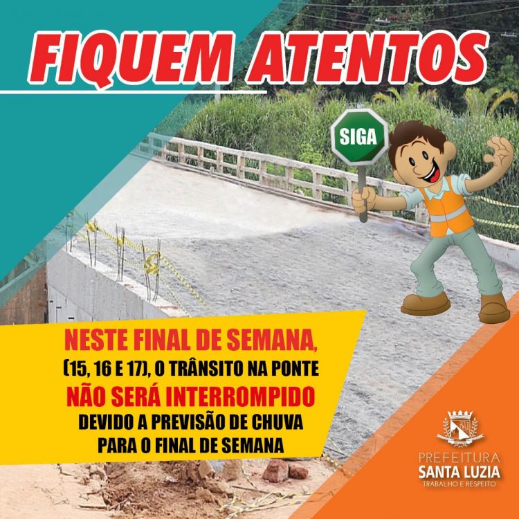 Em razão das chuvas dessa sexta-feira (15) e a previsão de continuação da mesma no final de semana, não será possível realizar a pavimentação asfáltica do trecho na ponte da Avenida Brasília, próximo ao bairro Belo Vale. Com isso, o trânsito não precisará mais ser interrompido nesta sexta, sábado e domingo (15, 16 e 17). Veículos poderão passar pelo local normalmente.