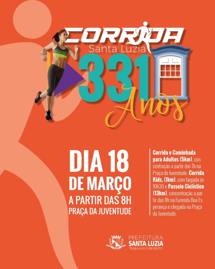 Em comemoração ao aniversário da cidade de Santa Luzia, que no próximo dia 18 completa 331 anos de sua fundação, a Prefeitura irá realizar diversas atividades. Na manhã de sábado (18), haverá a corrida, caminhada e passeio ciclístico, na Praça da Juventude, no bairro Cristina.