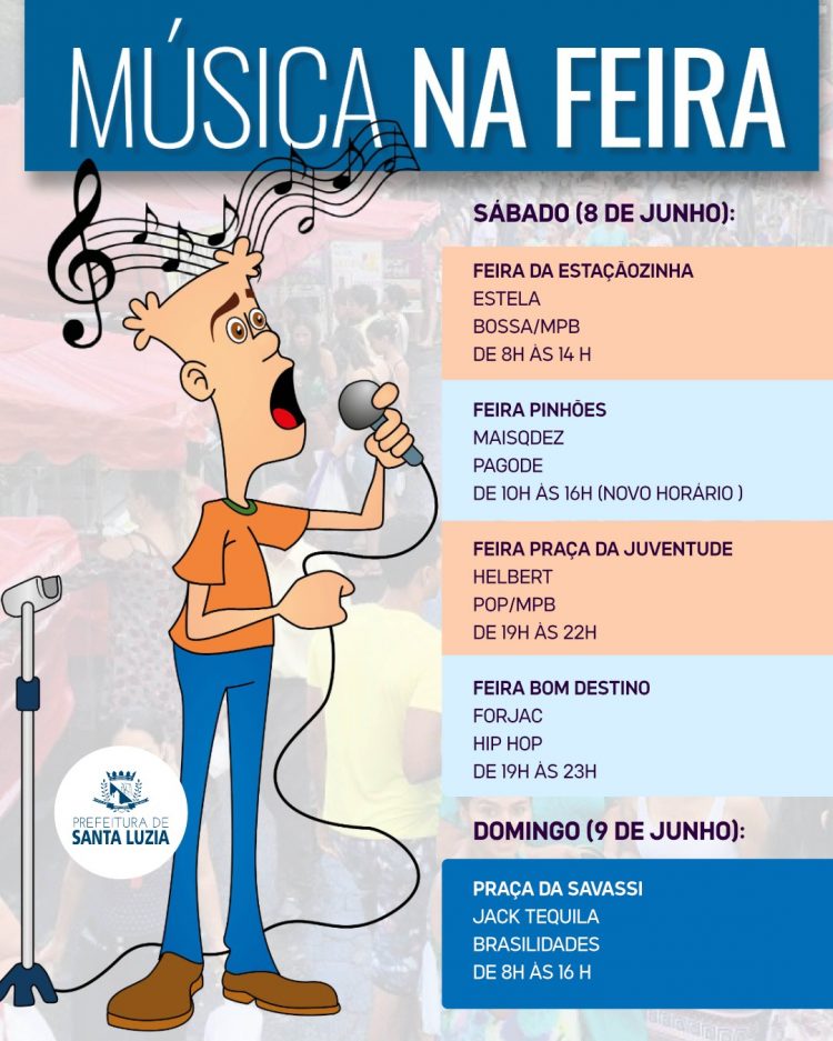 Música e alegria é o que não irá faltar nas feiras livres de Santa Luzia neste sábado e domingo. Confira todas as atrações!