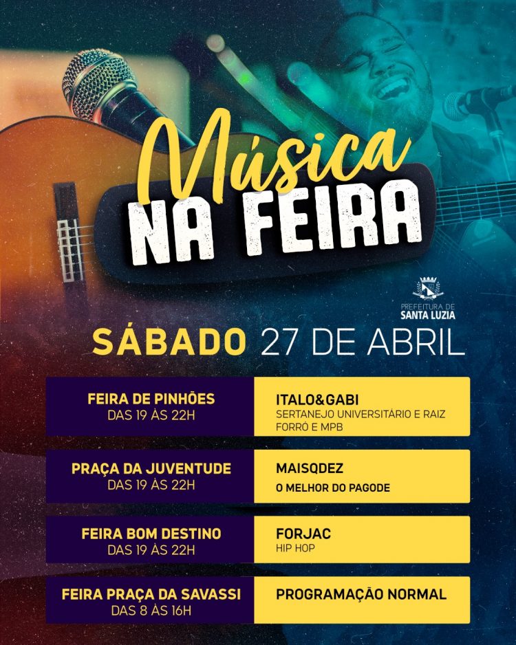Muita música e animação nas feiras livres da cidade neste final de semana. No sábado (27), a Feira da Pinhões terá como atração a apresentação da dupla Ítalo & Gabi, das 19h às 22h, com sertanejo universitário & raiz, forró e MPB.