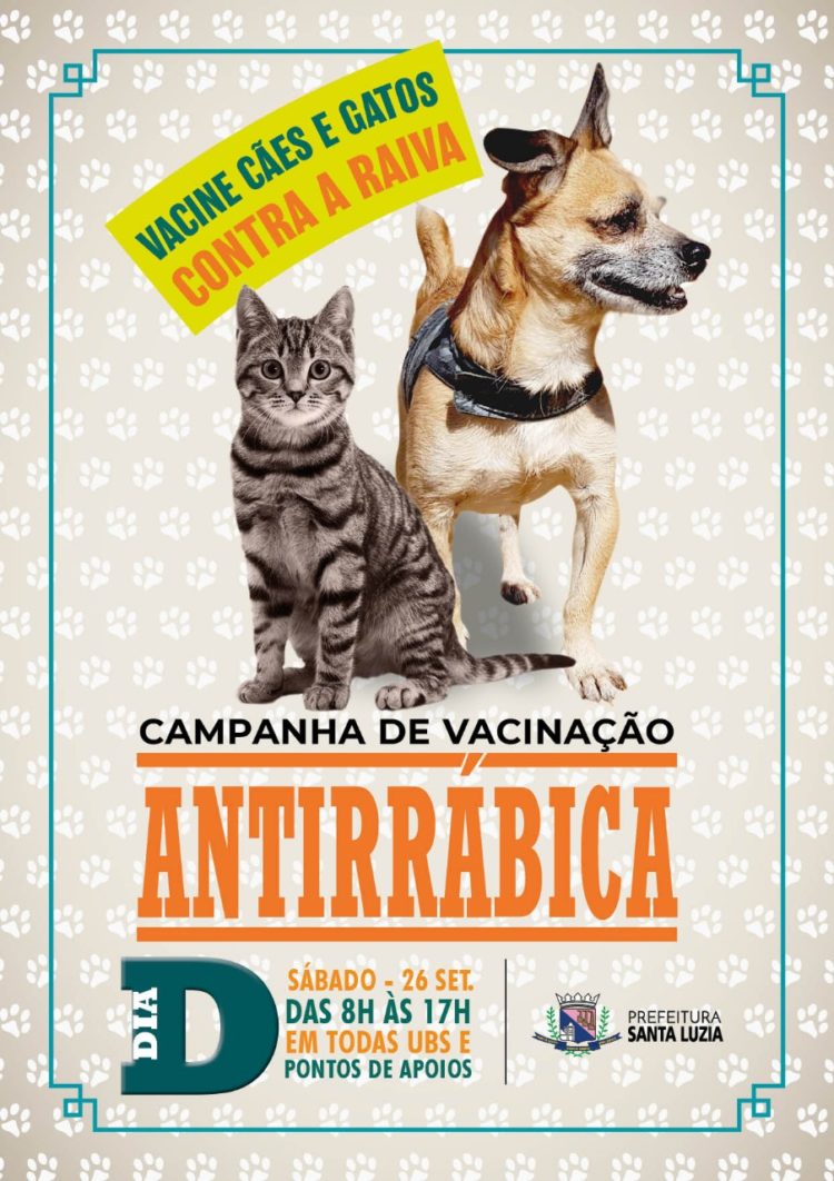 Terá início na próxima segunda-feira (21) a edição 2020 da Campanha de Vacinação Antirrábica de Santa Luzia, que será realizada em dois diferentes locais: a antiga estação rodoviária na parte alta e a antiga estação do Move no São Benedito nos dias 21 a 25 de setembro e 28 a 02 de outubro. No sábado, dia 26, considerado o “Dia D”, a campanha se estenderá a todas as UBSs do município.
