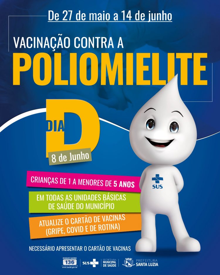 A Campanha Nacional de Vacinação contra a Poliomielite acontecerá de 27 de maio a 14 de junho, sendo o dia 8 de junho o dia “D” da campanha em todo o país.