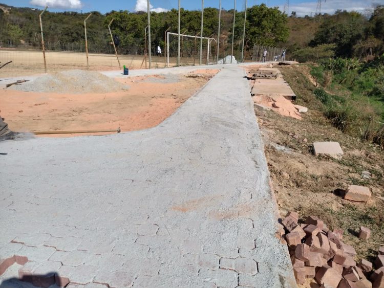 Está sendo realizada a construção de um passeio em volta do campo do bairro Bom Destino. As obras irão melhorar a infraestrutura do local que conta também com um parquinho instalado para lazer da garotada.