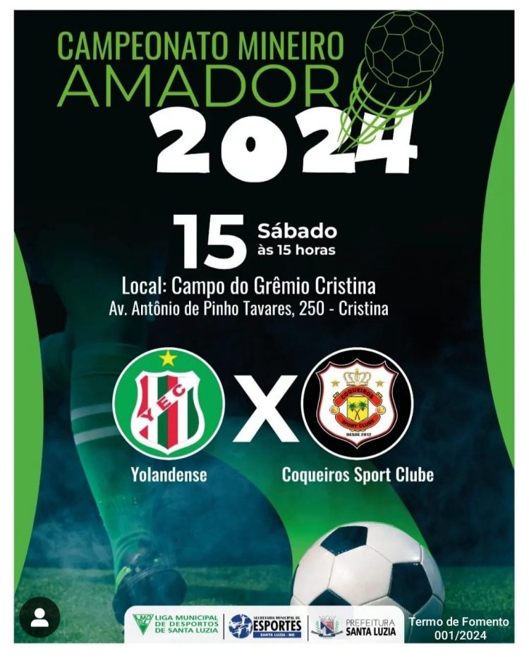 Neste sábado (15), a emoção do Campeonato Mineiro Amador promete agitar a Arena Grêmio Cristina com um confronto eletrizante. A equipe do Yolandense, vice-campeã da Série A em 2023, representará a cidade de Santa Luzia em um duelo contra o Coqueiros Esporte Clube, de Sabará. A partida está marcada para as 15h00 e promete ser um espetáculo de futebol amador, destacando o talento e a paixão dos jogadores de ambas as equipes.