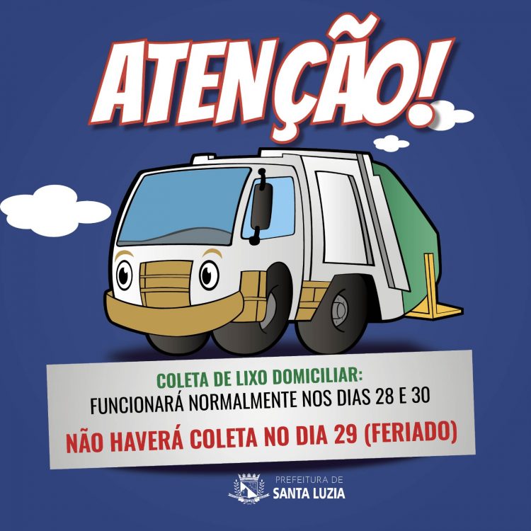 Coleta de lixo domiciliar: Funcionará normalmente nos dias 28 e 30.