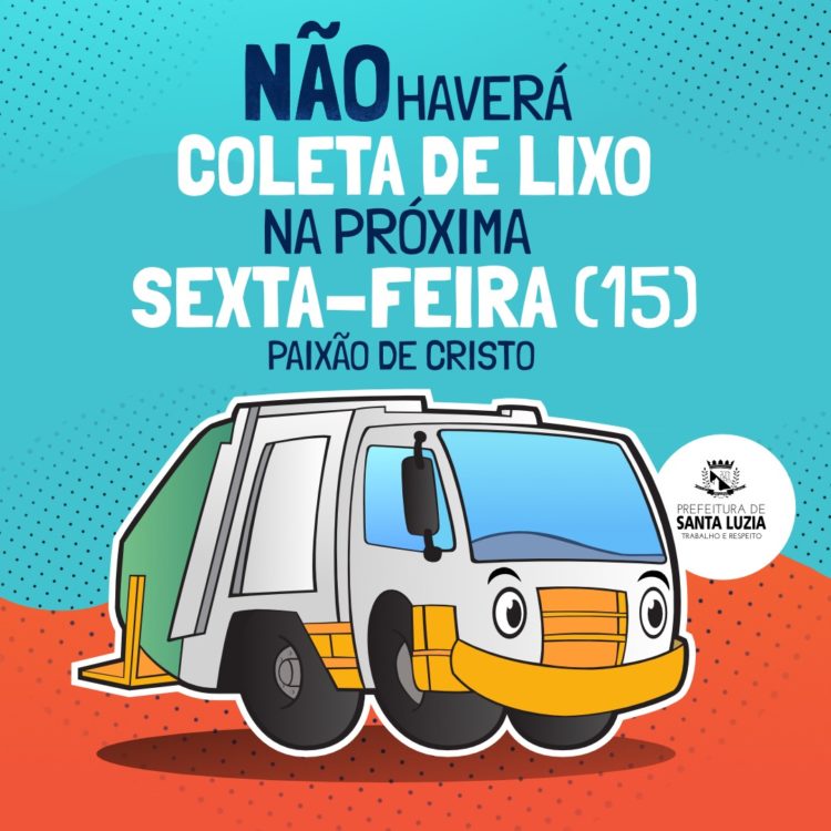 A Prefeitura de Santa Luzia, por meio da superintendência de Limpeza Urbana informa que, na próxima sexta-feira (15), feriado da Paixão de Cristo, não haverá coleta de lixo domiciliar. Para as regiões em que a coleta é realizada segunda, quarta e sexta, os moradores devem aguardar até a próxima segunda-feira (18), quando haverá o recolhimento dos resíduos. Já para os locais onde a coleta acontece terça, quinta e sábado, os serviços permanecem sem alteração. Na sexta também não funcionarão os aterros sanitários.