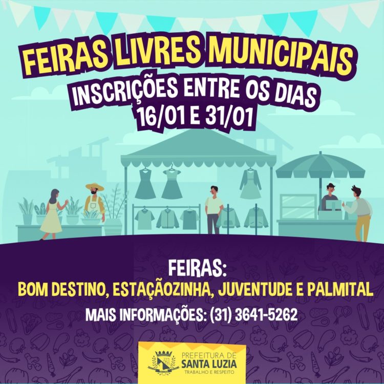 Os feirantes que desejam expor seus produtos nas feiras municipais deverão ficar ligados. Está aberto o edital de Chamamento para os interessados em comercializar suas mercadorias nas FEIRAS BOM DESTINO, ESTAÇÃOZINHA, JUVENTUDE ou PALMITAL. As inscrições acontecem entre os dias 16/01/2023 e 31/01/2023. Ao todo, são ofertadas 145 vagas, distribuídas, exclusivamente, entre os setores de vestuário, acessórios, perfumaria, artesanato, floricultura, alimentação, hortifruti, utilidades domésticas, eletrônicos, livros e brinquedos, entretenimento em brinquedos infláveis e elásticos, ferramentas e peças.