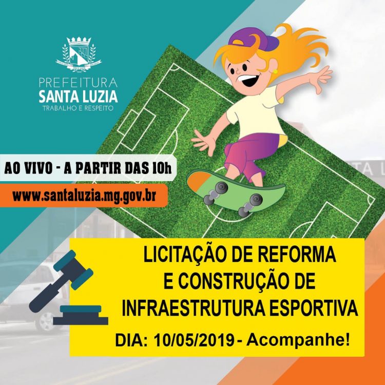 A partir das 10h de hoje (10/05), a Prefeitura de Santa Luzia realiza a licitação (na modalidade Tomada de Preços), para contratação de empresa que ficará responsável por diversas obras de infraestrutura esportiva no município. As obras devem ser iniciadas já no mês de junho.