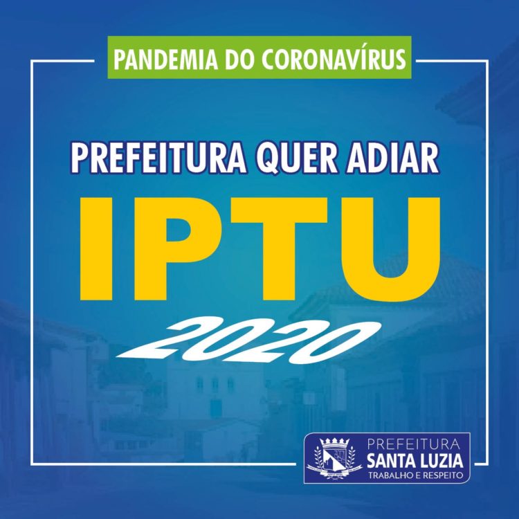 Informamos a todos os munícipes, que visando minimizar os impactos e com a necessidade imediata de isolamento social devido a pandemia do coronavírus, a Prefeitura Municipal de Santa Luzia já está realizando estudos para viabilizar a edição de decreto municipal para adiamento dos prazos de vencimento do IPTU 2020.