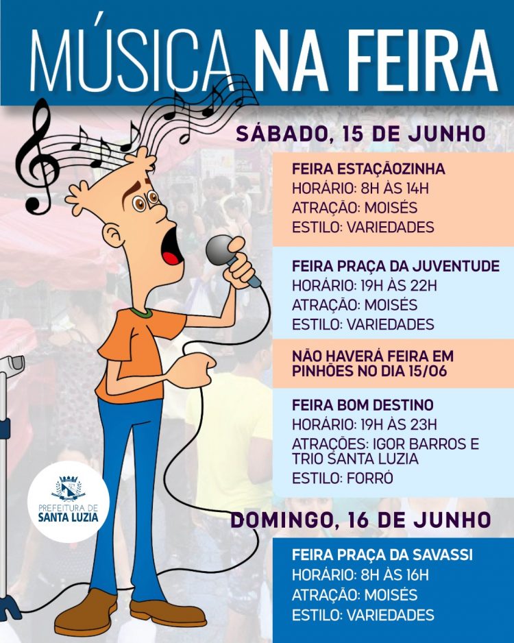 Santa Luzia se prepara para um final de semana repleto de música e animação nas suas tradicionais feiras livres. A programação musical promete agradar a todos os gostos, oferecendo uma variedade de estilos e artistas locais. Confira abaixo as atrações que irão animar os visitantes: