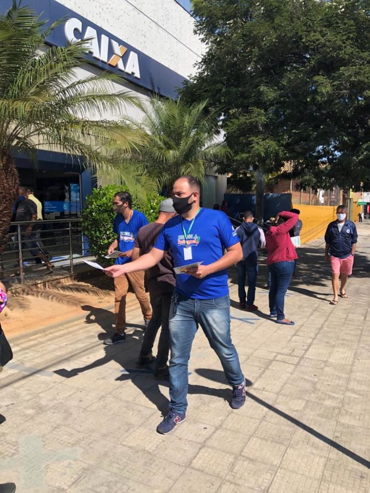 Uma panfletagem educativa elaborada pela coordenação do Projeto Escola Integral para conscientização da população sobre os meios de prevenção contra a Covid-19, foi realizada na manhã desta quarta-feira (3) na avenida Brasília e na rua do Carmo, próximo às agências bancárias, que são os principais pontos de aglomeração.