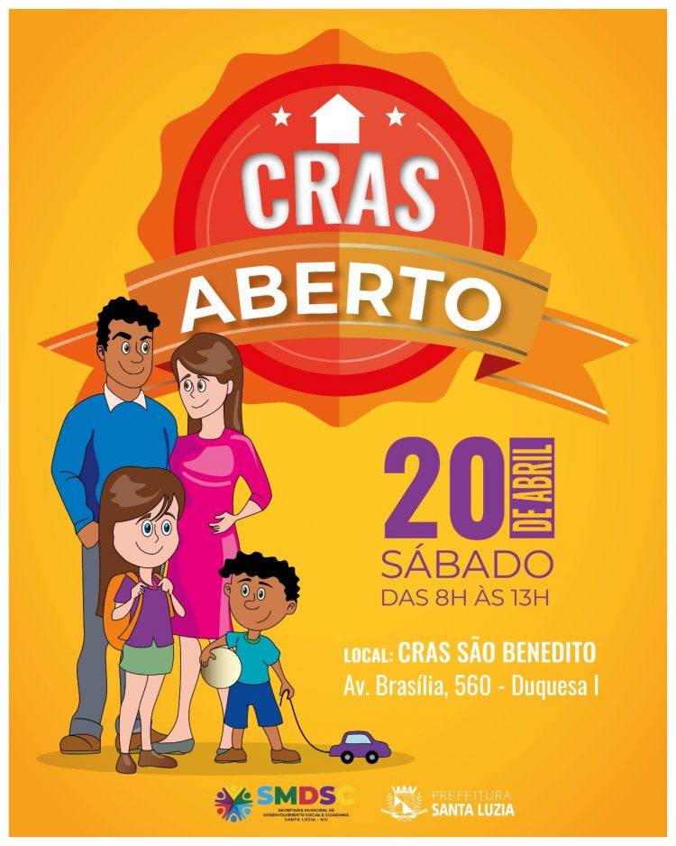 Uma das quatro unidades do Centro de Referência de Assistência Social – CRAS, a unidade São Benedito, estará aberta no sábado (20), durante todo o período matutino, das 8h às 13h, com todos os atendimentos ofertados normalmente.