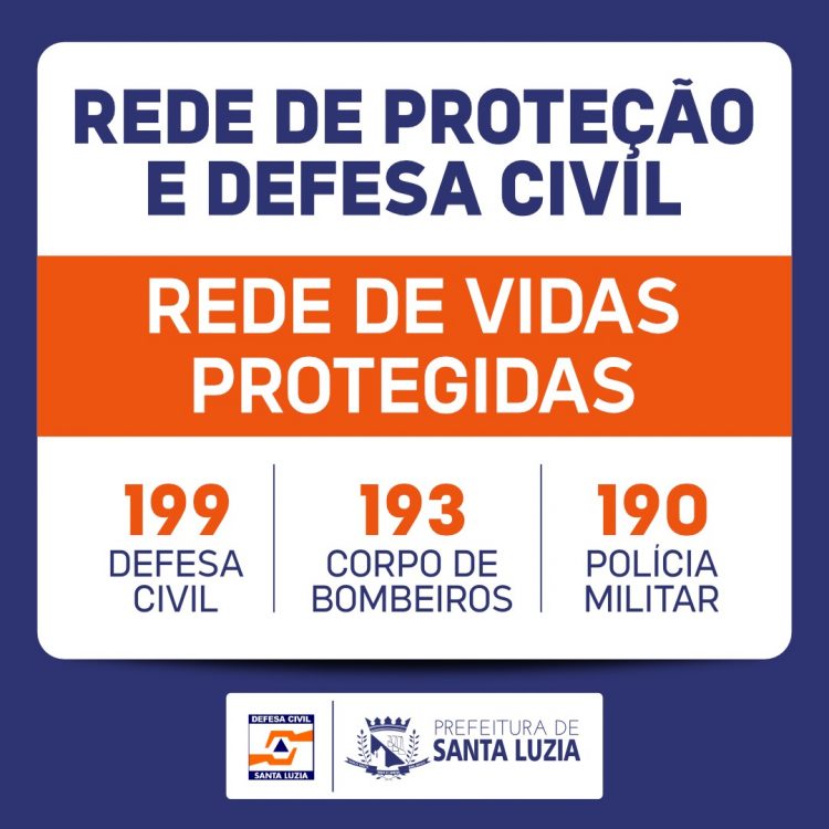 A Defesa Civil de Santa Luzia, lança a Rede de Proteção e Defesa Civil. O que é a Rede de Proteção e Defesa Civil? É uma estratégia de elo entre a Defesa Civil e os moradores de áreas de risco que a Coordenadoria Municipal de Proteção e Defesa Civil de Santa Luzia irá implantar nas comunidades do nosso Município com riscos de desastres sejam eles geológicos ou hidrológicos. Consiste na organização de cidadãos de cada comunidade que irá compor um grupo de whatsapp com o objetivo de contribuir nas ações de prevenção, mitigação, resposta e recuperação, alem disso receberão alertas e avisos meteorológicos, poderão encaminhar solicitações de vistorias preventivas entre outras.