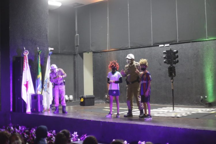 A equipe fez uma apresentação lúdica para alunos da Escola Municipal Modestino Gonçalves, que se divertiram enquanto aprendiam lições básicas sobre trânsito seguro. A iniciativa alertava as crianças sobre a importância de observar os dois lados da via, ainda no passeio, antes de atravessar a rua e também sobre as responsabilidades de cada um (motoristas e pedestres).