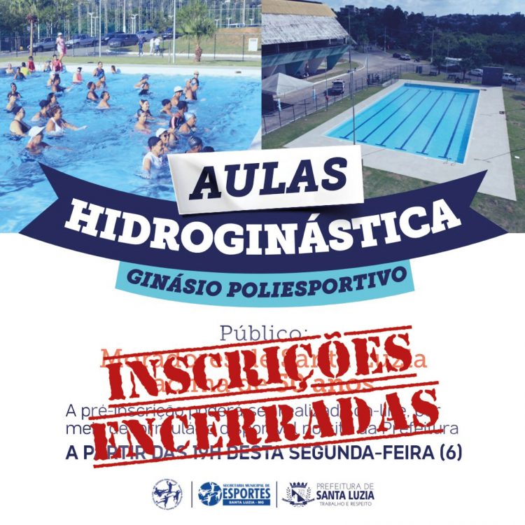 A Prefeitura de Santa Luzia, por meio da secretaria Municipal de Esportes comunica que as inscrições para as aulas de hidroginástica voltadas para pessoas maiores de 50 anos foram encerradas. Foram pré-selecionados os 100 primeiros inscritos para cada turma, sendo 60 dentro do número de vagas e os outros 40 para cadastro de reserva. Os candidatos dentro do número de vagas para as aulas de hidroginástica terão entre os dias 08 e 10 de maio para realizar a inscrição pessoalmente na Secretaria Municipal de Esportes, das 9h às 11h30 e das 13h às 16h30. É necessário apresentar comprovante de residência para confirmar ser residente de Santa Luzia e o atestado médico comprovando a aptidão para a atividade física. Confira o resultado oficial através do link: bit.ly/3Uw9ggK