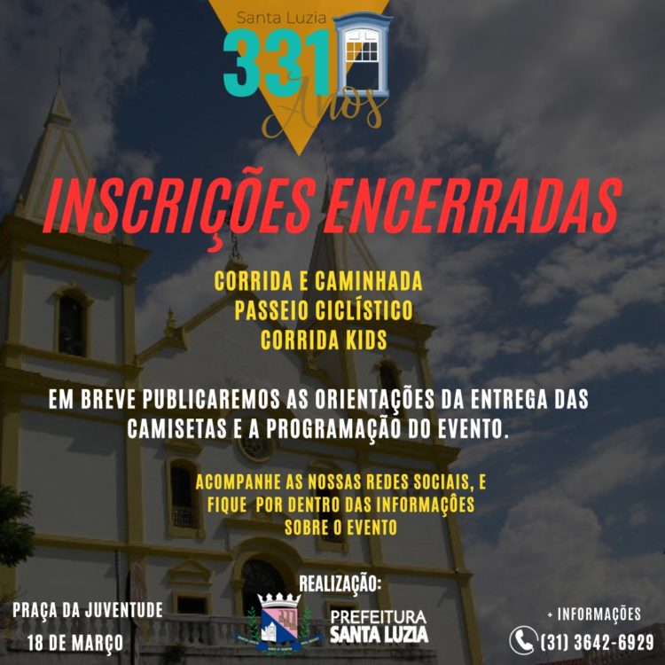 A ação será realizada em celebração aos 331 da cidade e a iniciativa é da Secretaria Municipal de Esporte e Lazer, a qual convida todos os munícipes – mesmo os que não se inscreveram – a participar, comparecendo ao local e levando as crianças. Para ficar por dentro de novas informações sobre o evento, basta acompanhar as redes sociais da prefeitura, ou informar-se pelo fone: 31 3642-6929.