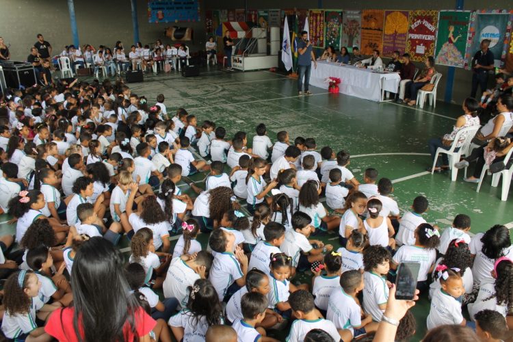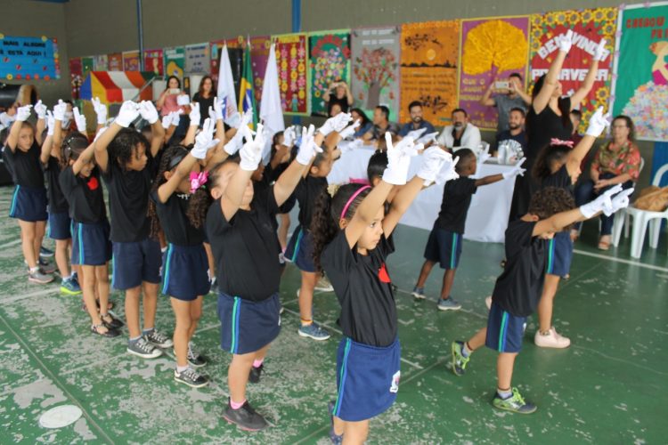 Ao início da cerimônia, os alunos do projeto Arte Para a Vida, composto por estudantes das Escolas Municipais Professora Ceçota Diniz, Dona Quita e Luisa Rosália Diniz Kentish fizeram uma bela apresentação musical, trazendo encanto para todos os presentes. Os alunos do 2º período da educação infantil, apresentaram a oração do pai nosso em libras.