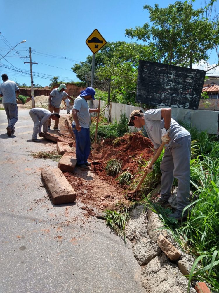 Cerca de 1200 peças de meios-fios – todas de fabricação própria da Prefeitura – estão sendo instaladas em ambos os lados da Estrada do Bananal, no bairro Bonanza, nos trechos em que estavam faltando. Os trabalhos começaram na quarta-feira (1) pela rua Francisco Viana Santos (que é continuidade da Estrada do Bananal) e, caso a chuva não atrapalhe, os trabalhos poderão ser concluídos de 15 a 20 dias. A instalação é feita após a realização de um corte no asfalto, abertura das canaletas, instalação das peças, concretagem da sarjeta e deposição e compactação da terra na parte de trás das guias, para apoio.