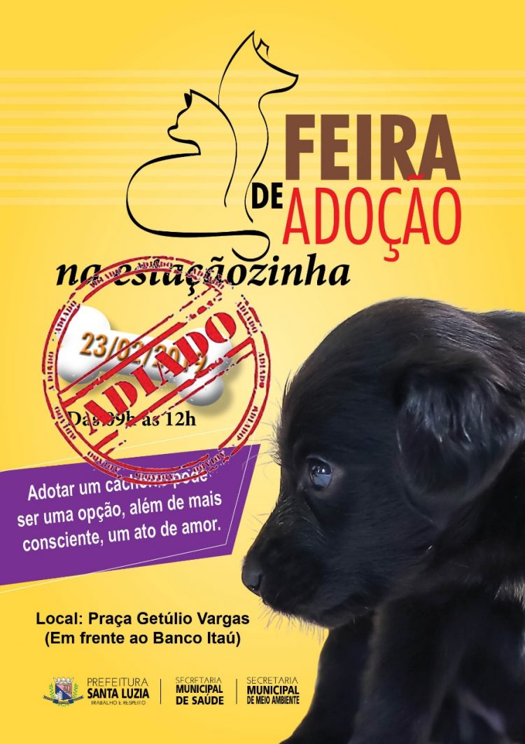 A Feira de Adoção, que seria realizada pela Prefeitura, por meio da Coordenadoria de Controle em Zoonoses neste sábado (23), foi adiada por motivos técnicos. Uma nova data será informada em breve.