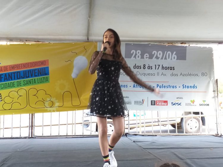 E para o fechamento do evento, a cantora mirim luziense  Yris Pereira de  13 anos, que participou do programa The Voice Kids, fez  uma  bela  apresentação.  Ela parabenizou a realização do evento na cidade e deixou um recado para crianças que tem o sonho de ser empreendedoras. “Eu acho incrível ter isso na cidade, a questão de se preocupar em um futuro para as crianças, eu fico muito feliz em ver isso acontecer. Ter essa feira faz com que as crianças tenham oportunidade de sonhar cada vez mais em ser  um youtuber,  ser  um  cantor ou  seguir uma carreira artística.  Para essas crianças eu digo uma coisa, nunca deixe de sonhar, desde criança eu sonhava em ser cantora, em dançar e agora estou realizando esse sonho, sempre sonhe alto”, disse empolgada.