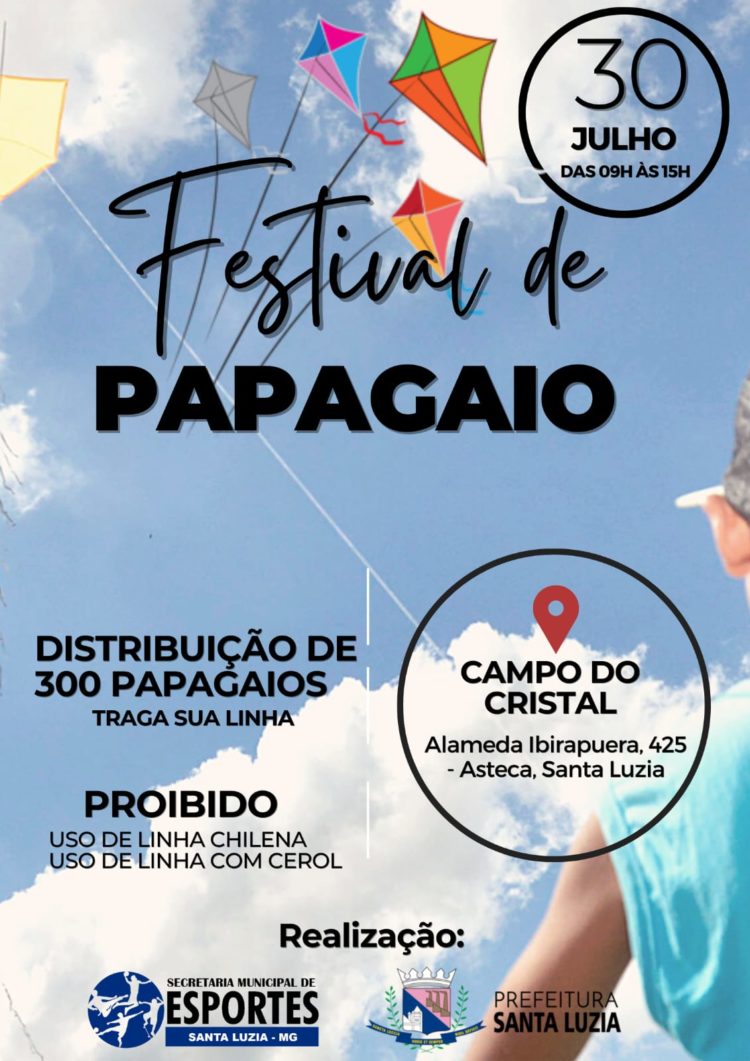 A Prefeitura, por meio da Secretaria de Esporte e Lazer vai realizar, no próximo dia 30 de julho, das 9h às 15h um Festival de papagaio no Campo do Cristal. No festival, as crianças e jovens irão empinar pipas e papagaios com linhas brancas não cortantes. As atividades serão longe da rede elétrica, para mostrar que a brincadeira feita da forma correta é muito mais divertida. Serão distribuídos 300 papagaios para as crianças presentes no evento.