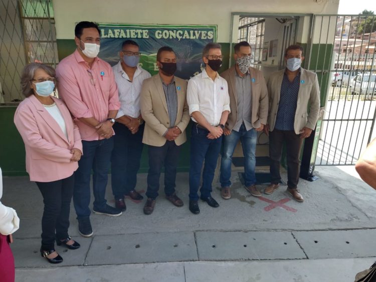 O governador do estado de Minas Gerais Romeu Zema (NOVO) visitou o município de Santa Luzia nesta sexta-feira (27) e foi recepcionado pelo Prefeito Delegado Christiano Xavier (PSD), pelo deputado federal Diego Andrade, secretários municipais e vereadores. Logo pela manhã, Romeu Zema compareceu à Escola Estadual Lafaiete Gonçalves, no bairro Palmital, para acompanhar a volta às aulas, conhecer as instalações do local e verificar as obras realizadas na escola, por meio do projeto Mãos à Obra da Escola. O muro da escola está sendo reformado e na ocasião, o governador anunciou também a reforma da quadra poliesportiva do local. Em seguida, Romeu Zema visitou moradores do bairro Palmital e explicou aos populares o esforço do Estado e Prefeitura com os projetos de regularização fundiária que já estão em andamento.