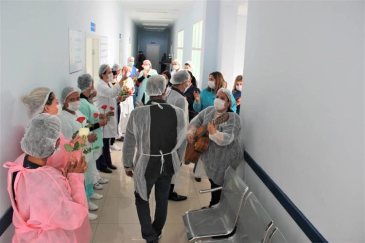 Uma homenagem aos profissionais da Enfermagem que atuam no Hospital Municipal Madalena Parrilo Calixto, em Santa Luzia foi feita na manhã desta quarta-feira (13), por toda equipe da direção. A enfermeira Júlia Emila, de posse do seu violão, percorreu os corredores da instituição cantando a música: “É preciso saber viver”, composta por Erasmo e Roberto Carlos. Enquanto cantava e tocava violão, uma equipe de funcionários do hospital e representantes da Administração Municipal acompanhava Júlia e distribuíam rosas para as enfermeiras e técnicas de enfermagem em seu posto de trabalho. Um gesto simples, que foi a maneira de agradecimento de toda administração pelos relevantes trabalhos desenvolvidos por esses profissionais que atuam na linha de frente contra o Coronovírus e outras doenças, dedicando seu tempo para cuidar dos outros.