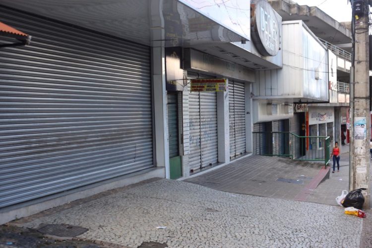 Alguns comércios que funcionaram na parte da manhã foram notificados e fechados, como se vê nas fotos tiradas por volta das 16 horas