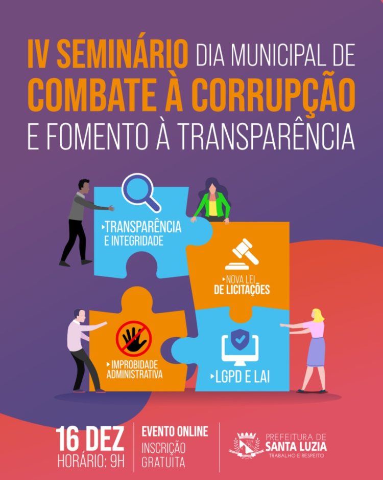 A Prefeitura de Santa Luzia, em comemoração à data, através da Controladoria-Geral do Município (CGM) promoverá, o ‘’IV Seminário de Combate à Corrupção e Fomento à Transparência”.