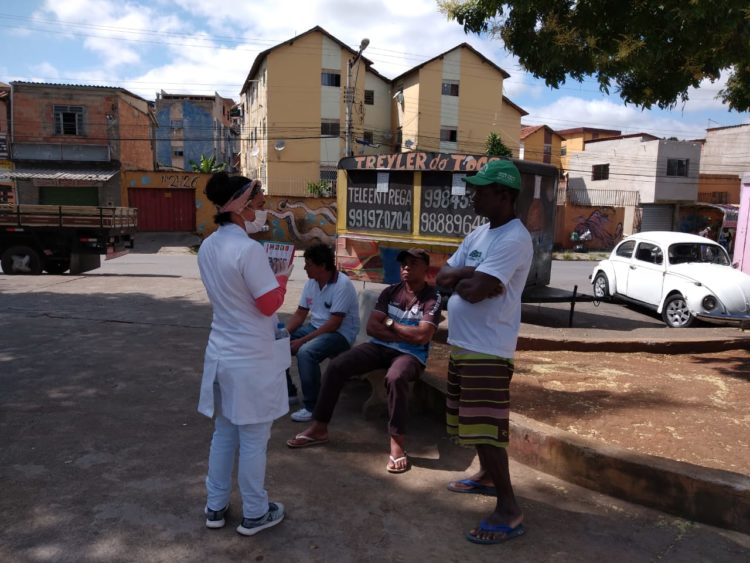 O Núcleo Ampliado de Saúde da Família (NASF) realizou, nessa segunda-feira (13), uma intervenção na Praça da Savassi, no bairro Palmital, para sensibilizar a população sobre o atual contexto na prevenção à infecção Covid-19 e o risco de disseminação do novo coronavirus nas aglomerações.