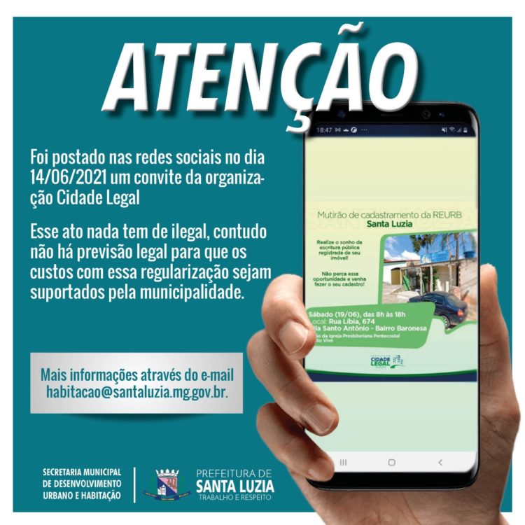 A Secretaria municipal de Desenvolvimento Urbano e Habitação está à disposição para mais informações através do e-mail habitacao@santaluzia.mg.gov.br.