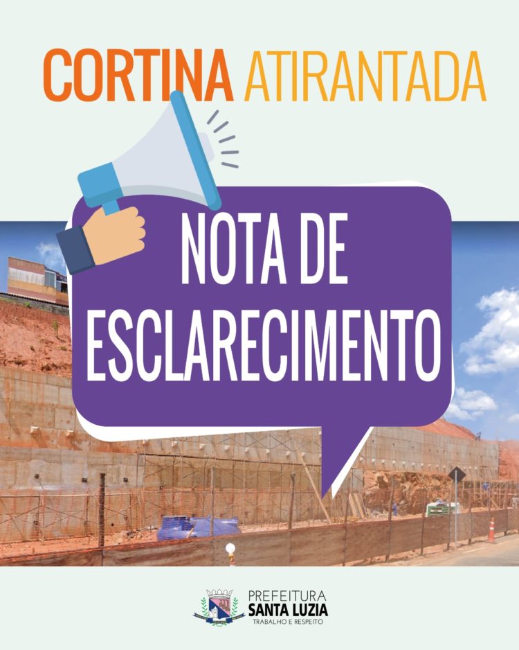 A Prefeitura de Santa Luzia vem a público informar que a notícia que está sendo veiculada acerca da Construção da Cortina Atirantada na Avenida Brasília, bairro São Benedito, é totalmente infundada trazendo informações inverídicas, tanto em seu viés financeiro como no estrutural.