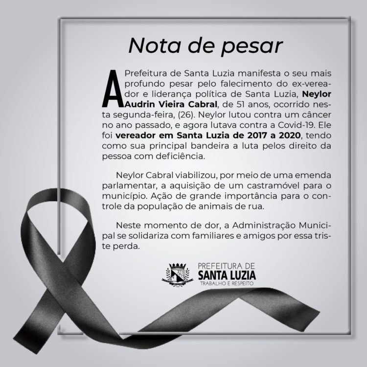 Notícia 27 de abril de 2021 Nota de pesar Anterior Prefeitura de Santa Luzia fará reunião na… Próxima Profissionais de saúde da rede privada que…