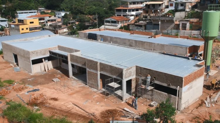 No momento está sendo finalizada a cobertura do prédio, iniciando as etapas de revestimentos, instalações hidrossanitárias (50% finalizados), piso interno da escola (30% finalizado) e os serviços de alvenarias já contam com 65% rebocado com argamassa.