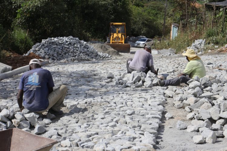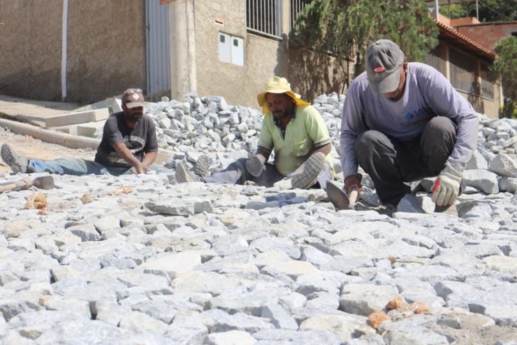 Até o momento já foram concluídos cerca de 40% das obras de calçamento e a previsão é que os serviços durem cerca de 20 dias.