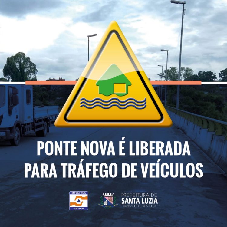 A Prefeitura de Santa Luzia informa que na noite desta segunda-feira (10), a Ponte Nova, interditada devido ao transbordamento do Rio das Velhas foi liberada para o tráfego de veículos. A liberação se deve graças a um intenso trabalho das equipes do Executivo municipal que se empenharam durante toda a tarde de hoje para efetuar a limpeza e avaliar as condições de segurança para o trânsito seguro na localidade.