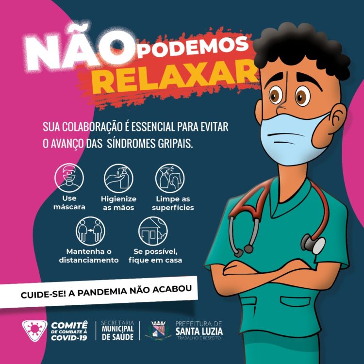 Por isso, não podemos relaxar! A colaboração de todos é essencial para evitar o avanço das síndromes gripais. É necessário manter as medidas de prevenção contra as doenças como o uso correto de máscaras, o uso de álcool em gel nas mãos, o distanciamento social, e o mais importante: manter a vacinação em dia.