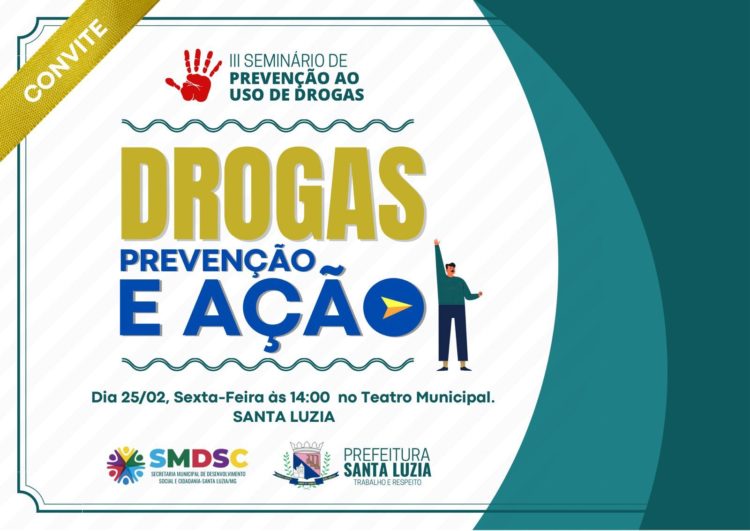 A Prefeitura através da Secretaria de Desenvolvimento Social e Cidadania e do Conselho Municipal de Políticas e outras Drogas de Santa Luzia (COMAD) convida a população Luziense para III Seminário de Prevenção ao uso de Drogas que realizará na próxima sexta feira (25), às 14 h, no Teatro Municipal, localizado à Rua Direita, nº 408.