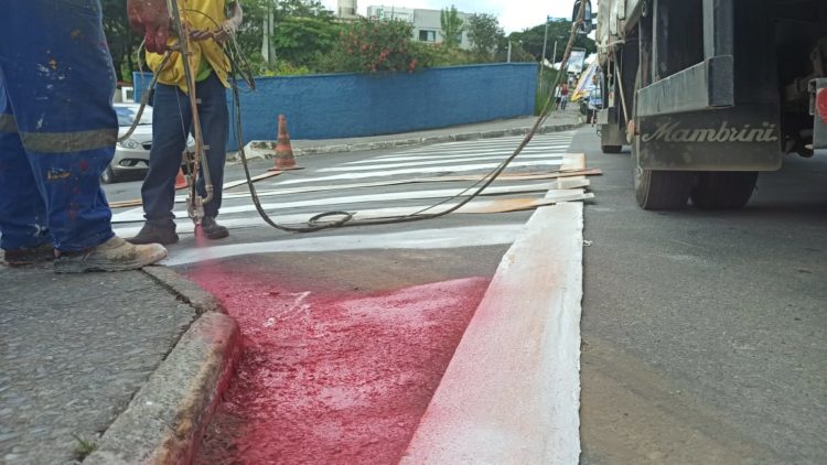 Prefeitura dá continuidade à pintura de faixa de pedestres em frente às escolas
