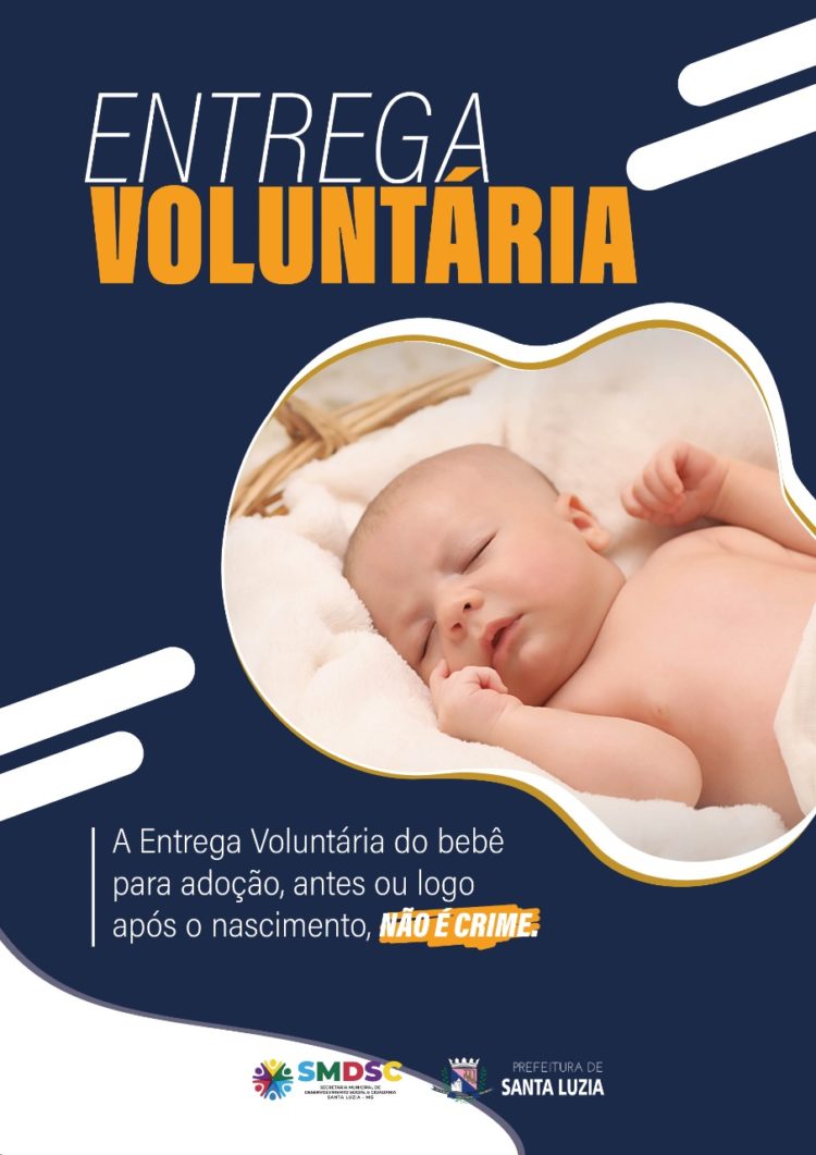 A Prefeitura de Santa Luzia, através da Secretaria de Desenvolvimento Social e Cidadania, está iniciando uma campanha de conscientização sobre a previsão legal de entrega voluntária de bebês para adoção, que foi incluída no Estatuto da Criança e do Adolescente (ECA) em 2017.