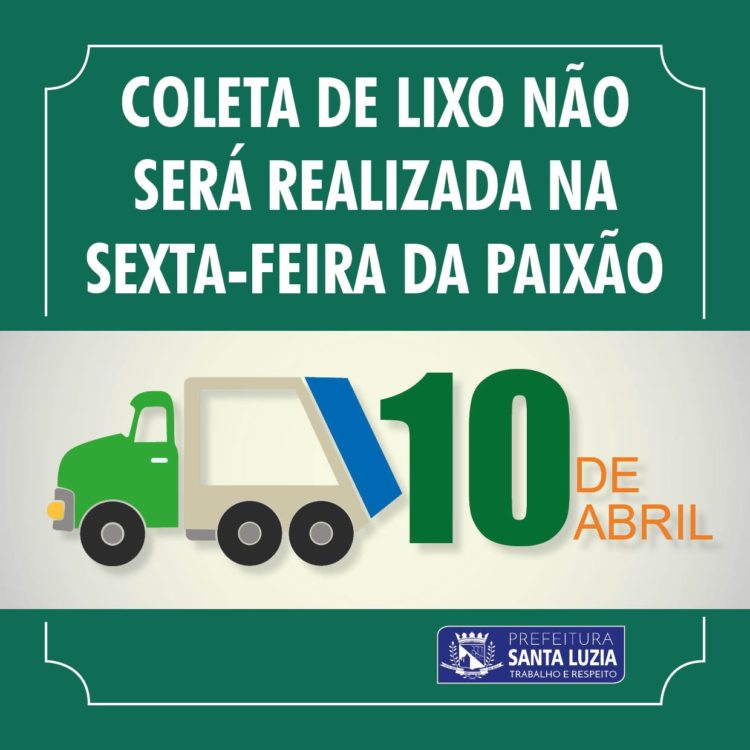 Prefeitura de Santa Luzia informa: Coleta de lixo não será realizada na Sexta-Feira da Paixão